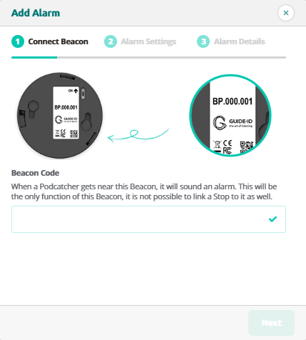 This guide walks you through the process of setting up the Alarm feature. Helping your visitors to return the Podcatcher at the end of a tour. What we will achieve is assigning the Alarm function to a Beacon-Pro and set it live on the Podcatchers.
