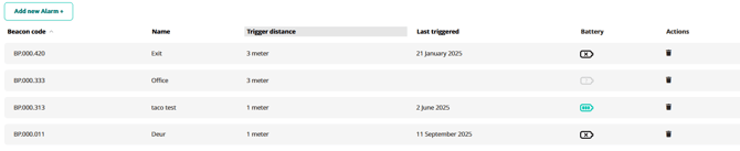 Each alarm can be triggered from an area centered on the Beacon Pro. The Trigger Distance determines how big this area is.