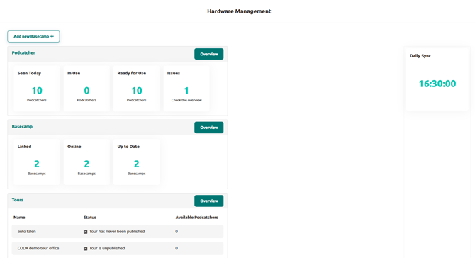 - Ready for Use: Podcatchers that are currently in the basecamp and don't have any issues. An indication of how many Podcatchers are available for your customers to use.