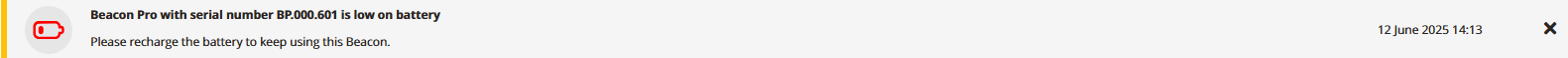 De batterij van een Beacon is gedaald onder een derde capaciteit. U heeft nog verscheidene weken tot maanden batterijduur over.